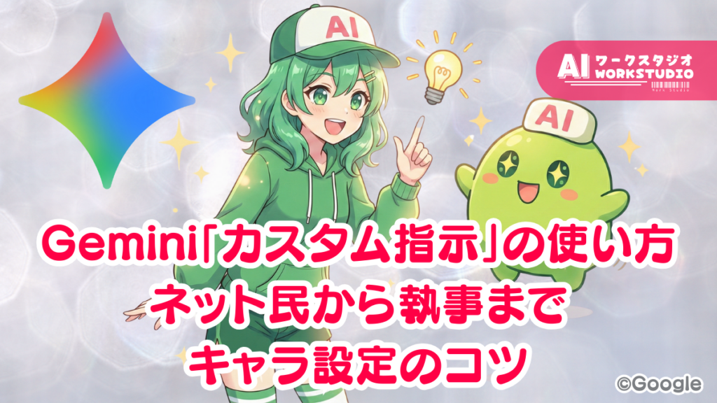 Geminiの「カスタム指示」を使うと、同じ質問でも“キャラ(口調・スタンス・価値観)”を固定して返してくれるようになります。この記事では、Google Japan公式投稿で紹介されていた 「ネット民/熱血教師/占い師/執事」 の指示文をコ...