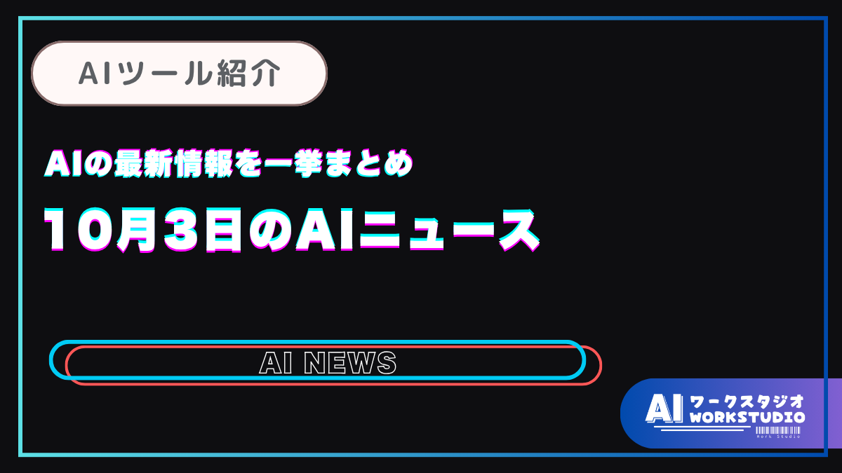 さて、10月最初のAIニュースですが本当に色んな事がありました。中には一つの時代の転換期とも言える超ビッグニュースも!順を追って見ていきましょう!