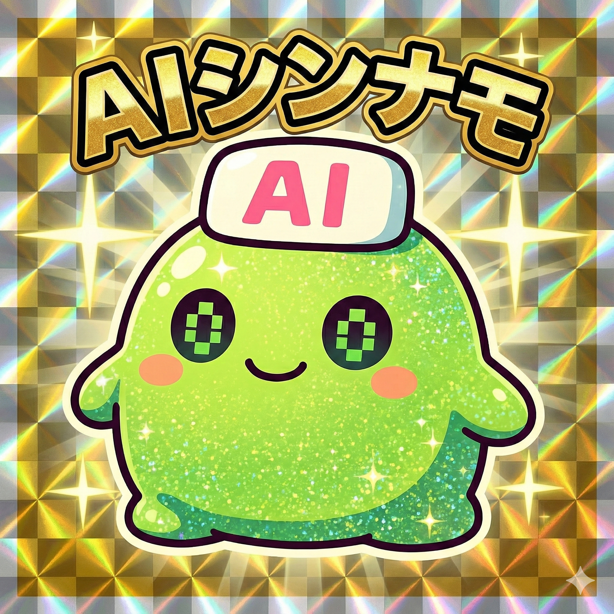 画面上部には太い縁取りの日本語タイトルロゴ「AIシンナモ」を大きく配置。