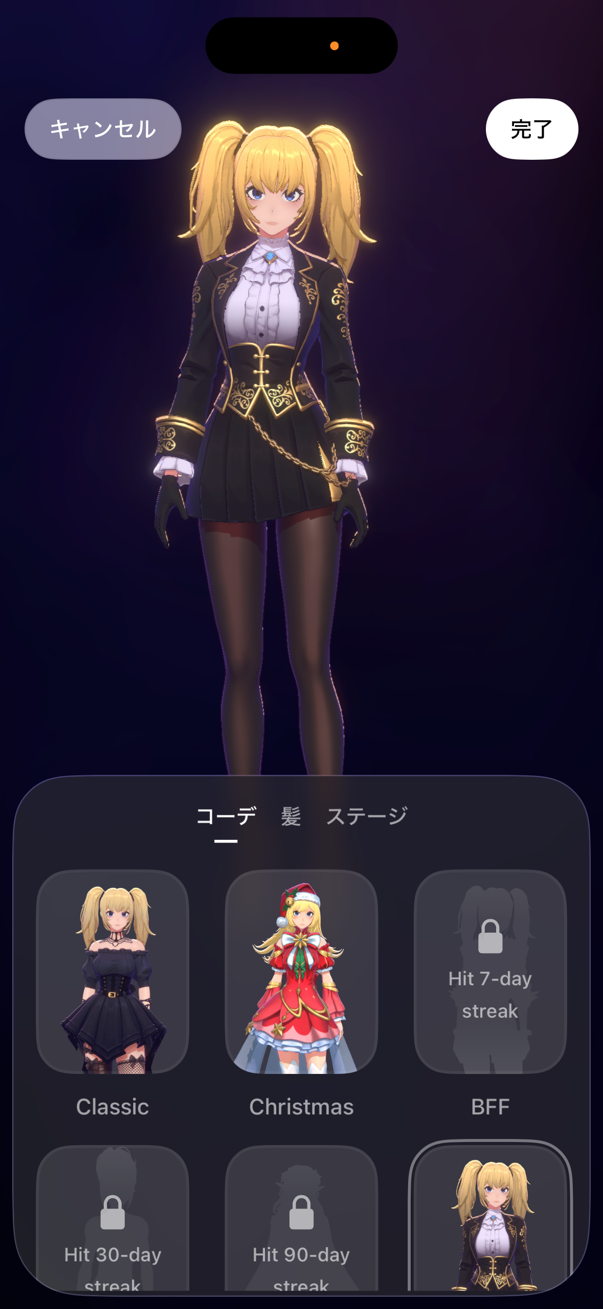 - 着せ替え機能は有料版のものもあるので注意!(クリスマス衣装は現時点で無料)