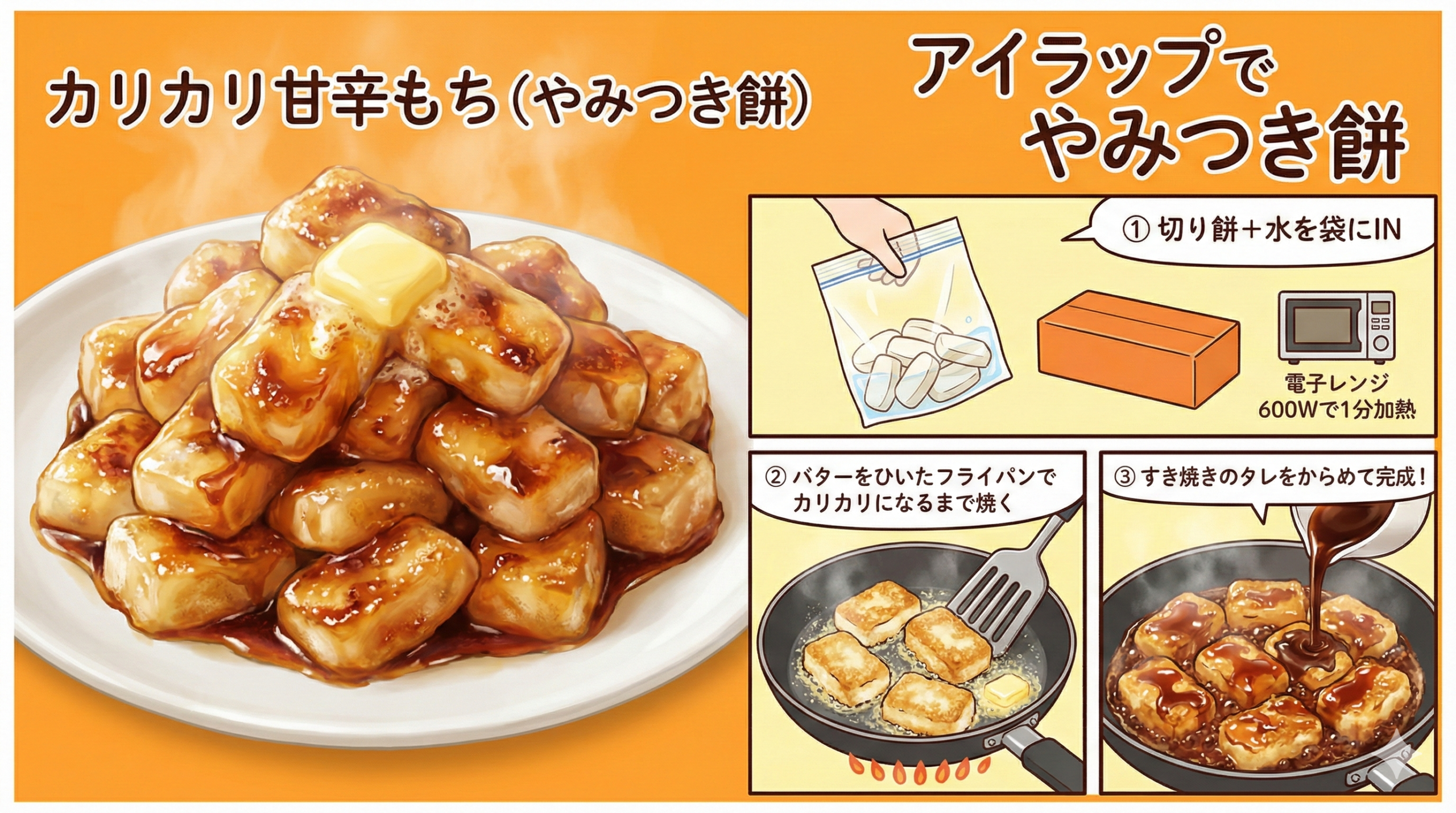 - アイラップのバズレシピ「やみつき餅」がどんな料理か
