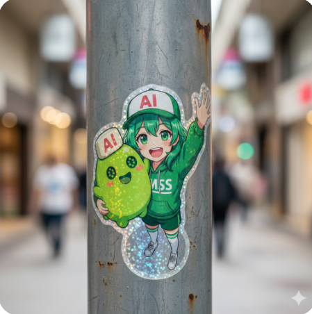 ステッカー化 → 電柱や壁に貼る → スマホ写真風に撮る - それをSNSのアイキャッチ等に使うと