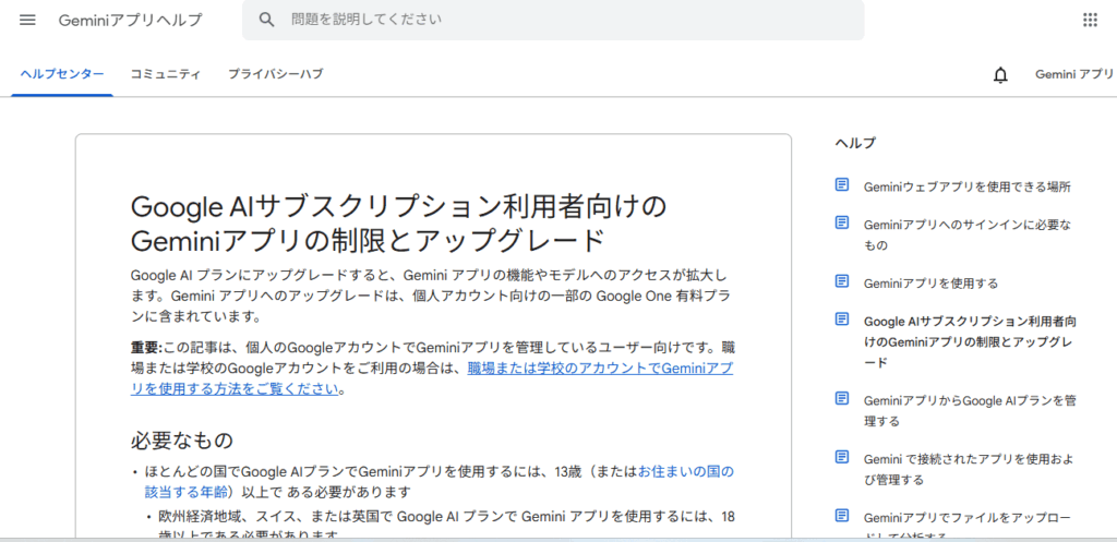 (画像はGoogleよりGeminアプリヘルプ公式サイトをキャプチャーしています)