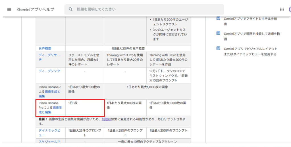 無料ユーザーのNano Banana Proは「1日3枚まで」と明記されていました。