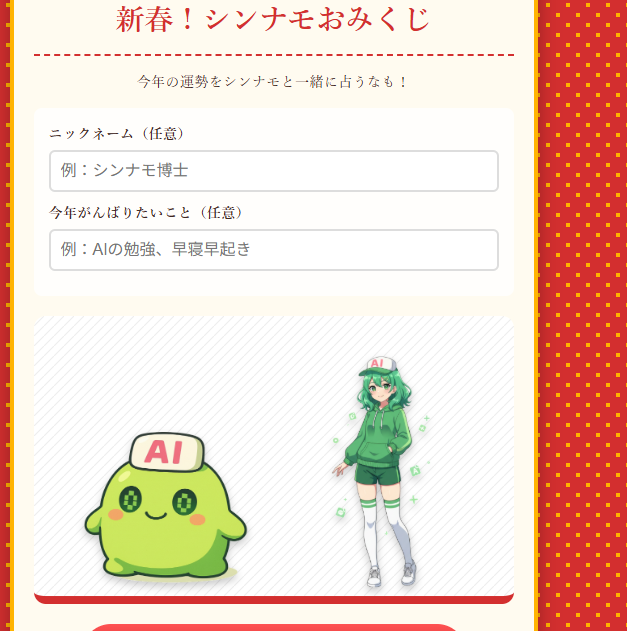 遊べるWebアプリ「シンナモAIおみくじ」をGemini3で作ってみました!