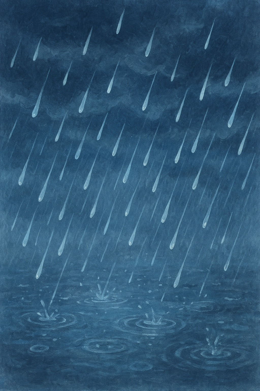 リアルな描写よりも、雨の情緒そのものを描こうとしているような印象。