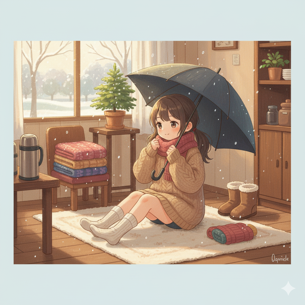 テーマは【 雨の日 】と【 冬支度の可愛い女の子 】
