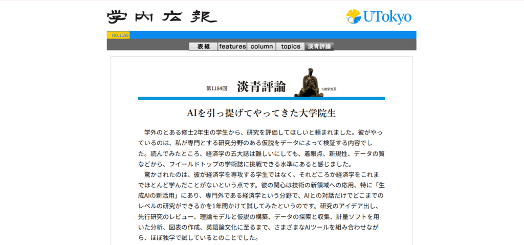 (画像は東京大学よりUtokyo学内広報公式ホームページをキャプチャーしています)