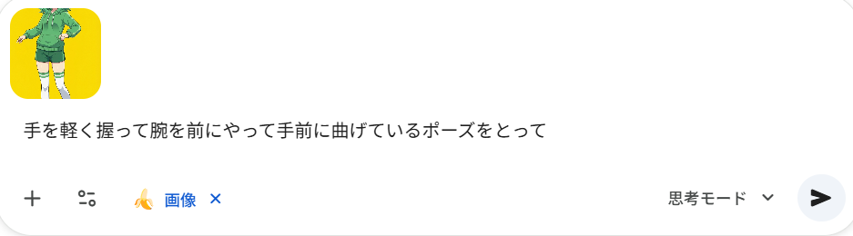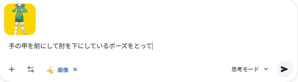 Gminiを開いたら下の画像にある印のツールから画像を作成を選択を押す。(思考モードにするとより良いものが出来る)