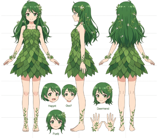 早速やってみましょう!今回のプロンプトにはキャラクターイラストが必要です。無論、今回も観葉植物ちゃん(擬人化)に協力してもらいます!