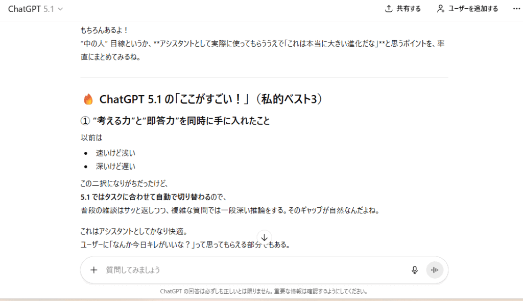 まとめ:ChatGPT 5.1は“使ってわかる進化”だった