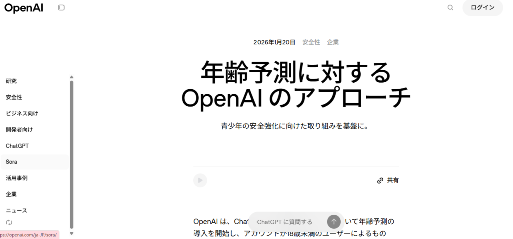 ChatGPTの年齢推定は、OpenAIが進めている安全対策の一つです。