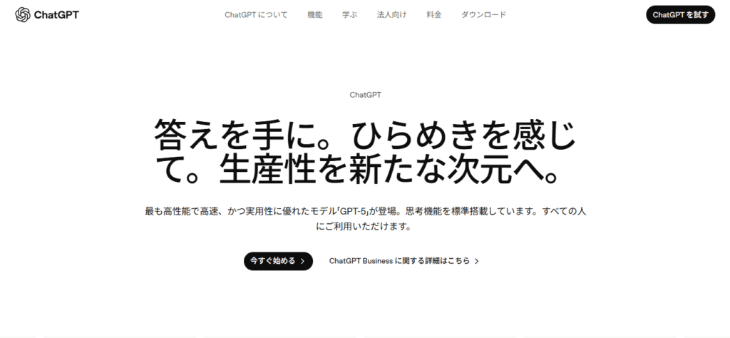(画像はOpenAIよりChatGPT公式サイトをキャプチャーしています)