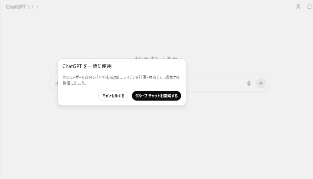 ChatGPTは「5.1」へのアップデートに伴い「グループチャット」という新機能が追加されました。ChatGPTの「グループチャット」は、複数人との会話にAIも同時参加して、議論を整理したり、質問に答えたり、話題をまとめてくれる機能です。