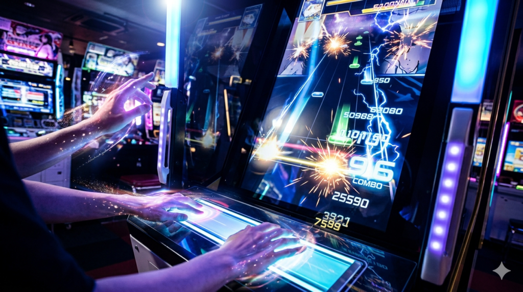 今回は、そんな臨場感たっぷりのプレイシーンを画像で再現する方法を、やさしくご紹介していきます。参考にするのは、SEGAの人気アーケード音楽ゲームを思わせるような、あの独特の世界観です。