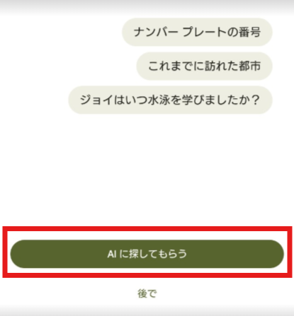 その後、Geminiの案内が出ますので「AIに探してもらう」(赤□部分)をタップします。