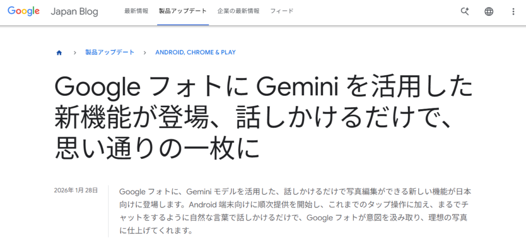 GoogleフォトのGemini「編集サポート」は、編集が苦手な人でも扱いやすい機能です。
