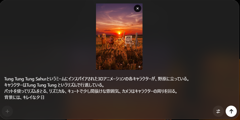 2. 動画用プロンプトを入力(今回はGeminiで作った画像も貼る)
