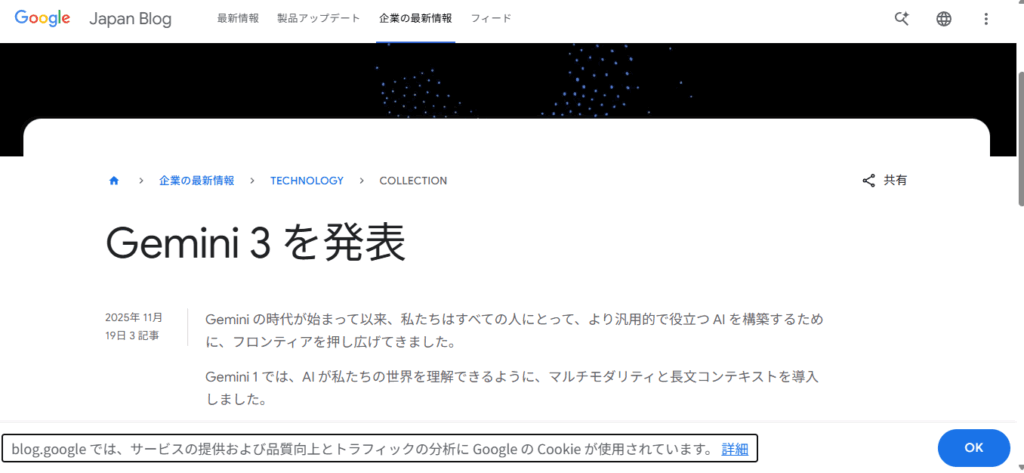 Gemini 3は、Googleが“これまでで最も知的なモデル”と紹介している新世代AI。