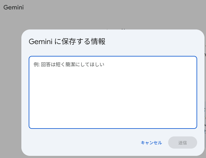 Geminiに「この先ずっと、こういう話し方/こういうルールで回答してね」と恒常的な方針(人格・文体・制約)を渡せる機能です。