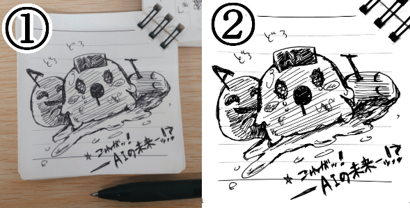 ノートの落書きを、AIに渡しやすい線画にしておくというひと手間です。