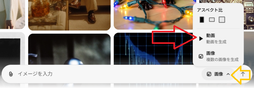 Imagine画面右下のメニューを開くと、生成タイプを選べます。