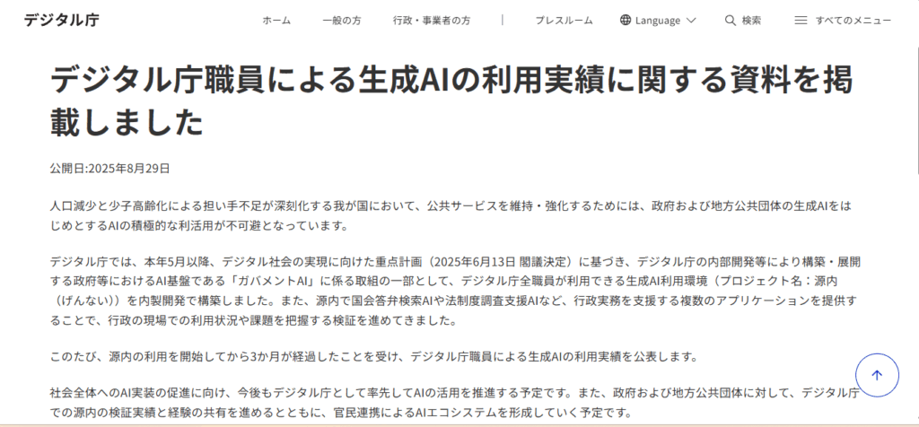 さらにデジタル庁では、デジタル庁全職員が利用できる生成AI利用環境「源内(げんない)」を内製し、実証実験を進めています。