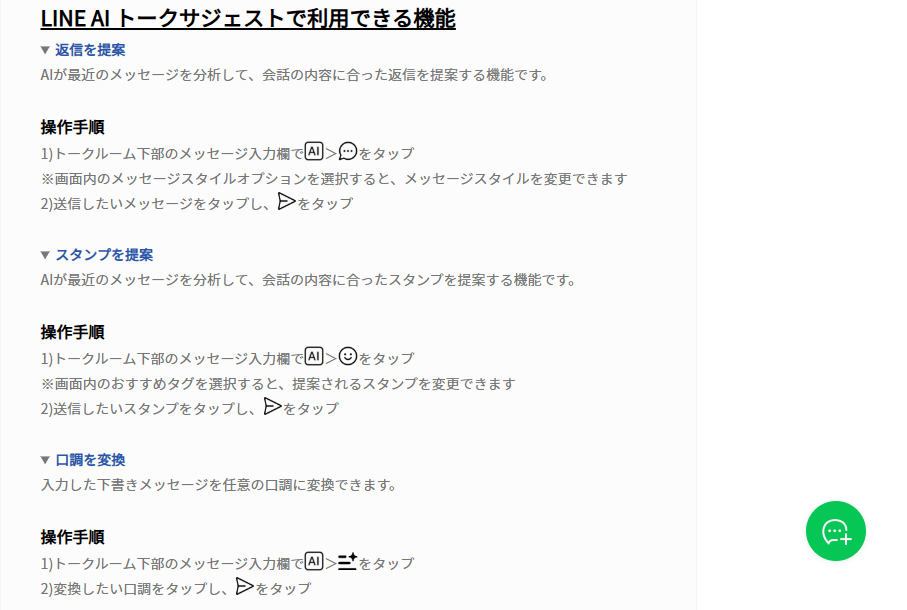 すべて「トーク入力欄横のAIボタン」から操作できます。