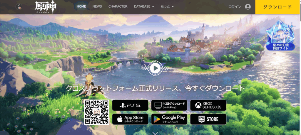 (HoYoverseより原神公式サイトをキャプチャーしています)