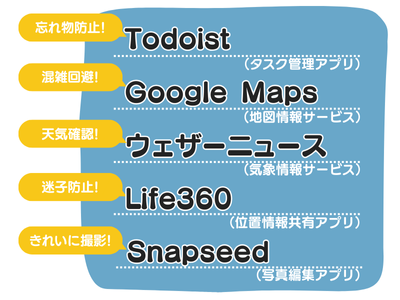 - 持ち物管理、混雑・天気の対策、安全対策、思い出の記録にAIが活躍