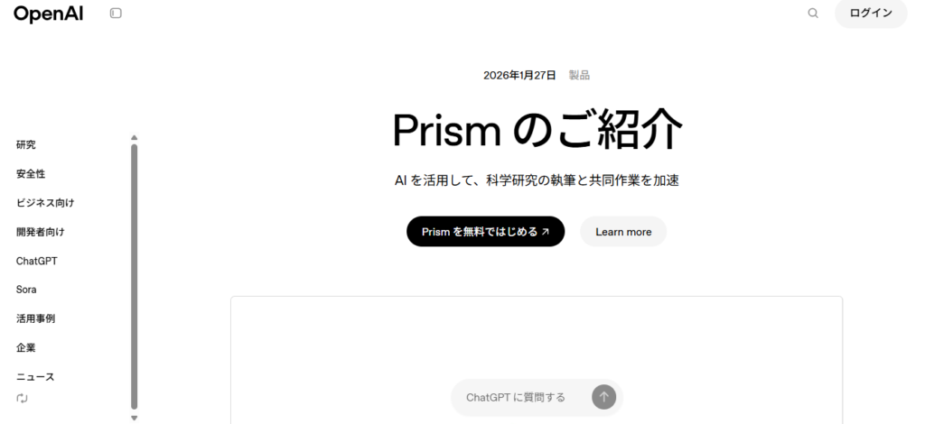 2026年1月28日、OpenAIが無料の新AIツール「Prism」を公開・リリースしました!