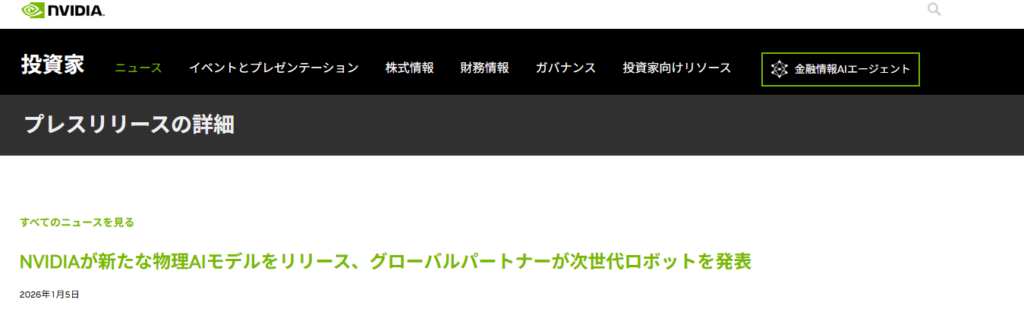 それが一般ニュースとして広がった転換点が、NVIDIAによるCES 2026での発表です。CES公式特設サイトはこちら