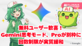 リンク記事では、Geminiの最新アップデートをシンナモ達がまとめているようだも。ふん…無料ユーザーには見逃せない情報を出すとは、小癪な奴らだも…損する前にこの記事もチェックしておくだも!
