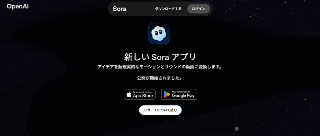 公式サイトが立ち上がったら、左の「Sora」項目をクリックします。