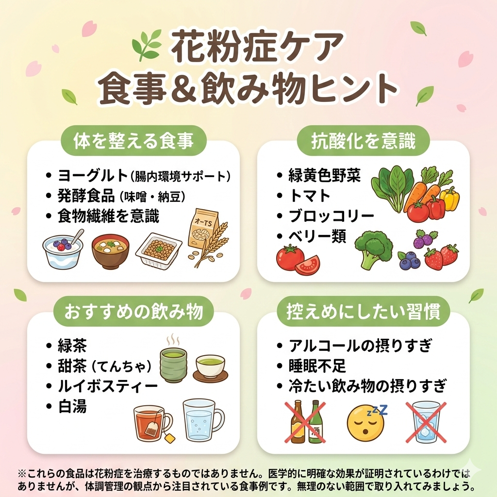 title: "🌿 花粉症ケア\n食事&飲み物ヒント"