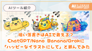 AIツール紹介 【比較実験】暗い落書きはAIで救える?ChatGPT・Nano Banana(Gemini)・Grokに「ハッピーなイラストにしてください」と頼んでみた結果