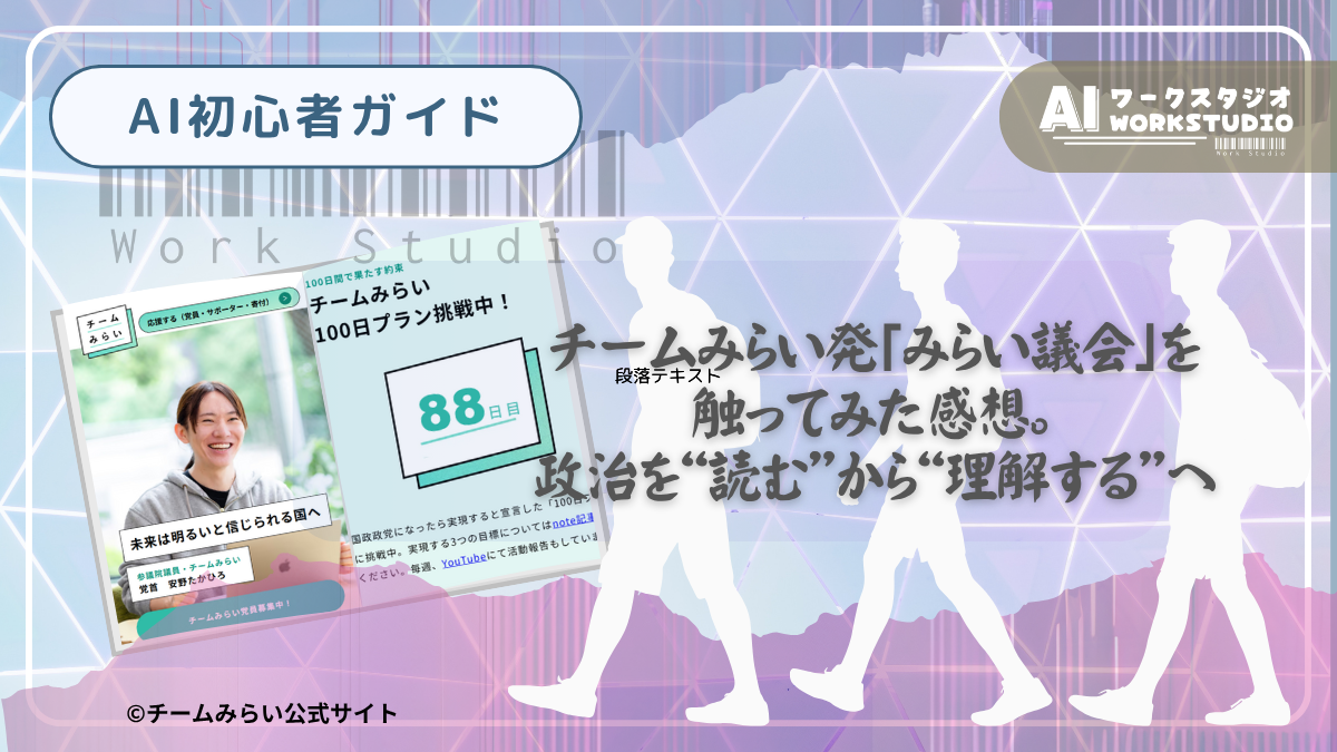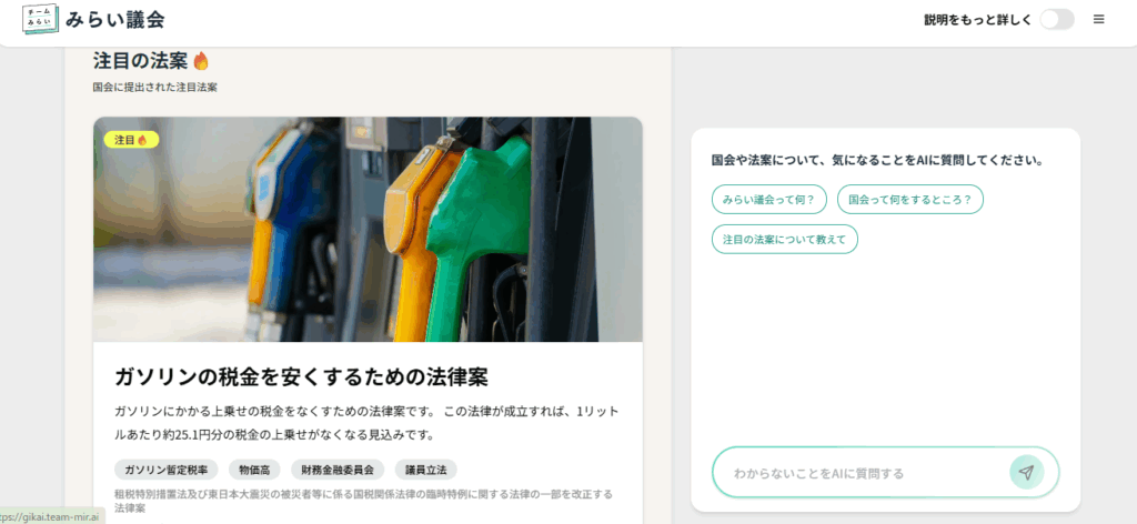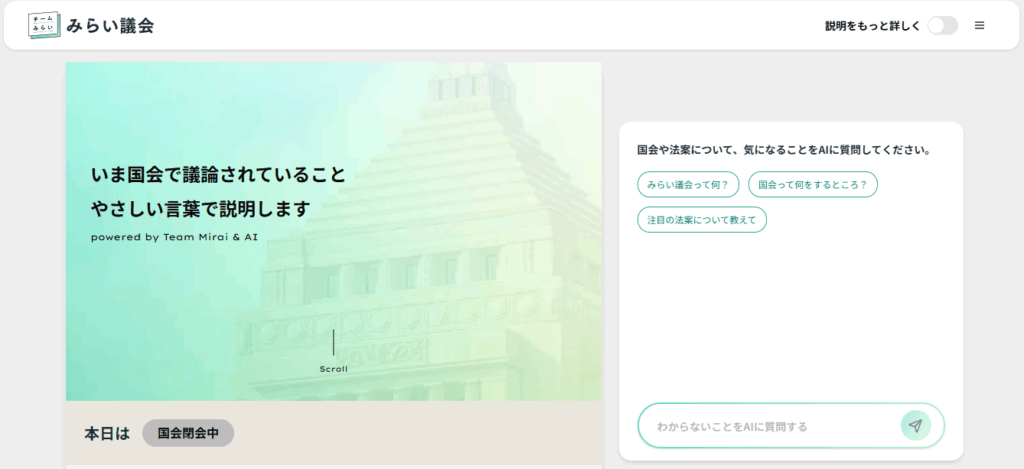 2025年10月16日、政党「チームみらい」がリリースした「みらい議会」というサイトがリリースされ、X(旧Twitter)で大きな話題になりました。