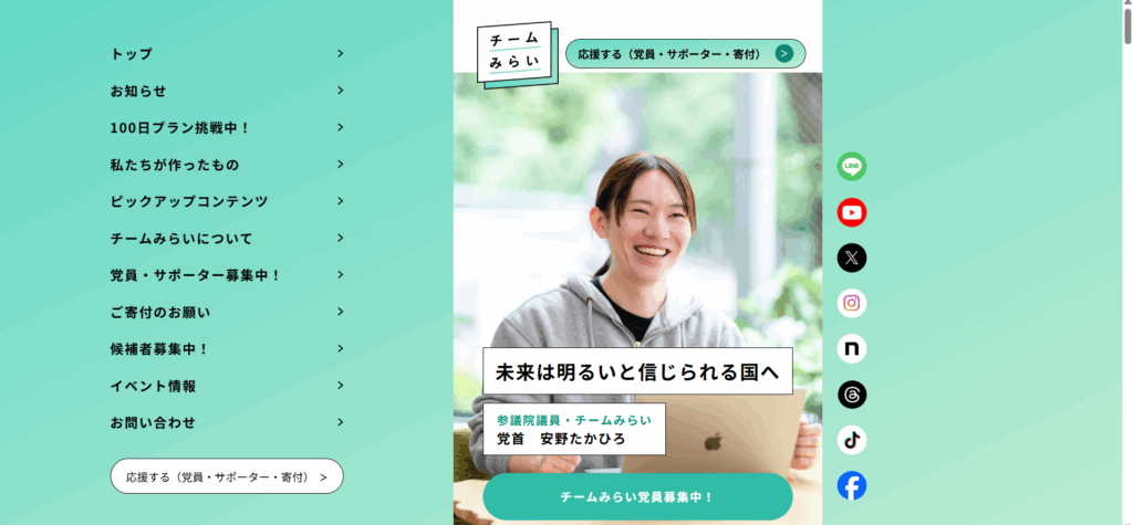 (画像はチームみらい公式サイトをキャプチャーしています)