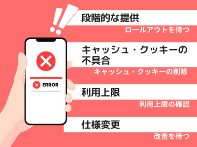 反映されない | ブラウザやアプリのキャッシュ・クッキー削除 |