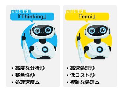 なかでも注目されているのが、「Thinking(シンキング)モデル」と「mini(ミニ)モデル」。今回はこの2つのモデルについて、特徴や違い、そして内部モデルとしてどんな役割を担っているのかをわかりやすく解説します。