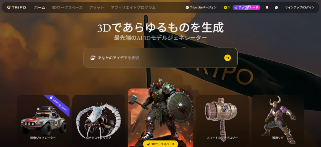 Tripo Studioは、画像やテキストから3Dモデルを生成できるAIツールです。