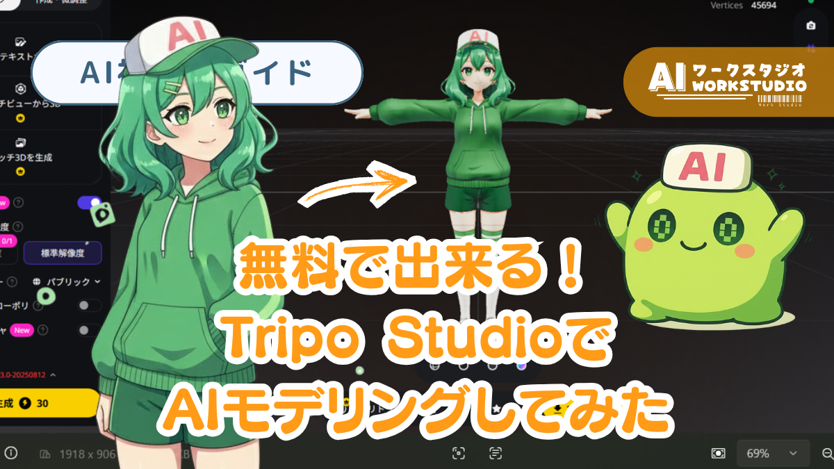 今回は Tripo Studio を使って、手持ちのキャラクター画像から3Dモデルを生成してみました。